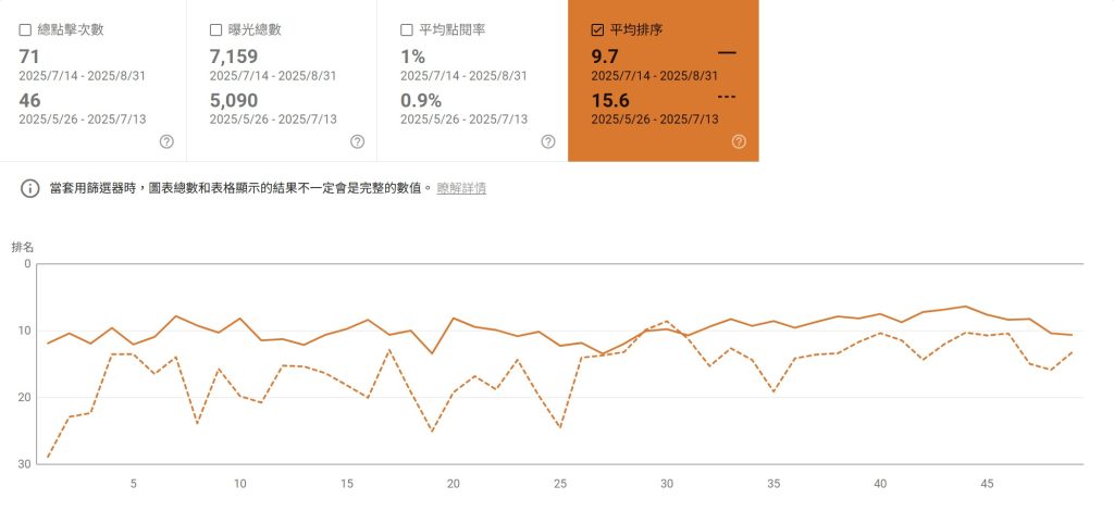 平均排名則提升了 5.9 個名次,剛好排進首頁。