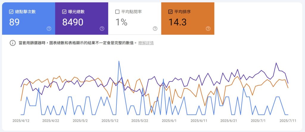 時間軸通常會拉 3 個月,這篇文章的日期範圍是:2025/04/12 ~ 2025/07/11。