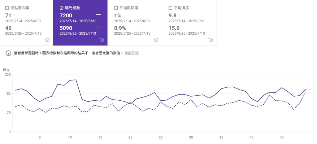 49 天的時間,點擊數提升 54.3%、曝光量提升 40.6%,點閱率微幅上升。