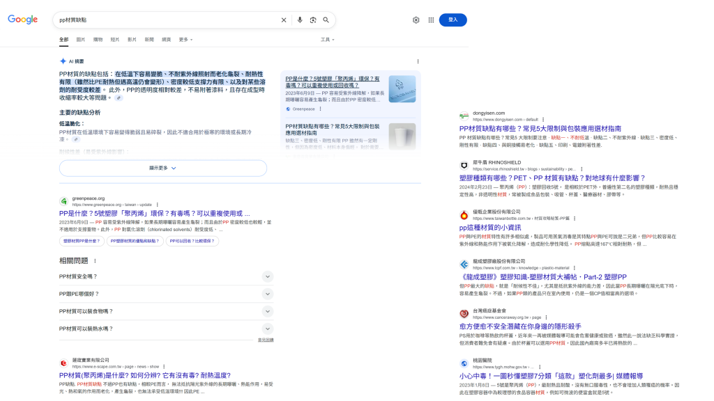 綜合以上數據可發現,「pp材質缺點」是很值得優先優化的關鍵字。